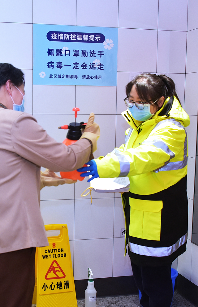 在疫情防控期間,首都機(jī)場加強(qiáng)了現(xiàn)場巡視檢查的頻次,既檢查現(xiàn)場的消毒情況,確保消毒按規(guī)定進(jìn)行,又關(guān)注保潔人員的身體健康和勞動防護(hù)用具的配備,保證一線員工的工作安全。