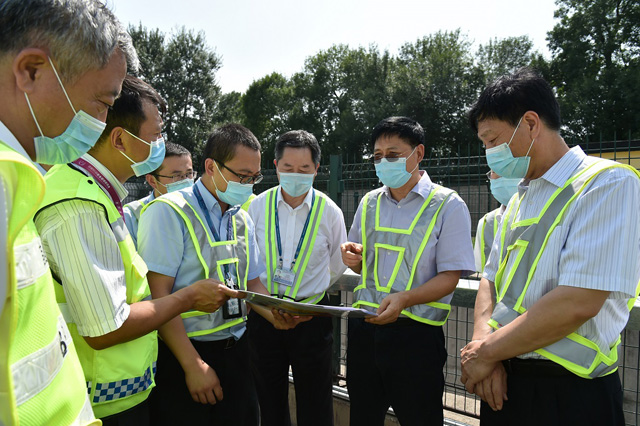 7月21日下午,集團公司黨委書記宋勝利,集團公司副總經理郟建青,集團公司黨委委員、股份公司黨委書記張國良,股份公司副總經理王蔚玉一行來到首都機場運行保障一線,先后赴首都機場防汛核心區(qū)域公共區(qū)3號泵站、飛行區(qū)1A泵站開展調研檢查。