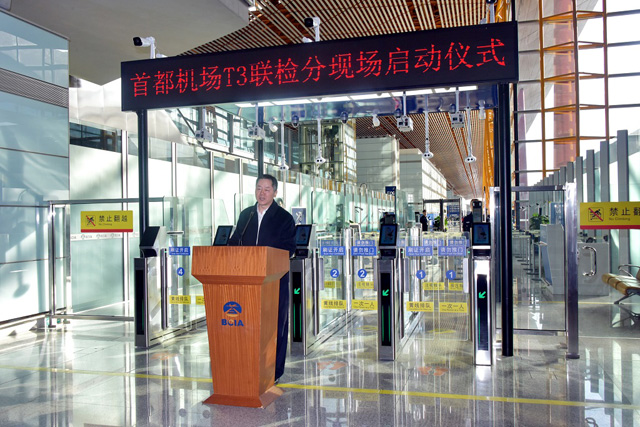 1月14日下午,首都機場舉行T3聯(lián)檢分現(xiàn)場啟動儀式。首都機場集團公司黨委委員、首都機場股份公司黨委書記張國良,首都機場股份公司副總經(jīng)理杜強,北京出入境邊防檢查總站副總站長吉利霞,首都機場海關(guān)副關(guān)長段凱,中國國際航空股份有限公司總會計師肖烽,北京首都機場航空安保公司總經(jīng)理李萬明等領(lǐng)導出席啟動儀式。
