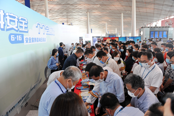 今年6月是第22個(gè)全國“安全生產(chǎn)月”,主題為“人人講安全、個(gè)個(gè)會(huì)應(yīng)急”。6月16日,全國“安全宣傳咨詢?nèi)铡碑?dāng)天,首都機(jī)場為進(jìn)一步增強(qiáng)公眾安全意識(shí),營造濃厚的安全氛圍,圍繞“安全生產(chǎn)月”主題,在航站樓、飛行區(qū)組織開展了“安全宣傳咨詢?nèi)铡被顒?dòng),集中宣傳安全生產(chǎn)方針政策、法律法規(guī)、民航安全規(guī)章和安全生產(chǎn)知識(shí),回答群眾關(guān)心的民用航空安全問題。