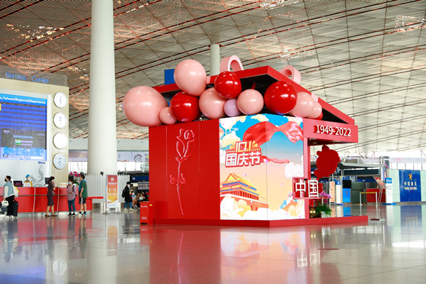 為全面踐行四型機(jī)場發(fā)展理念,深化人文機(jī)場建設(shè),在國慶節(jié)、重陽節(jié)到來之際,首都機(jī)場精心打造“‘禮’贊中華,情寄家國”主題系列節(jié)日景觀,為旅客送上溫馨的節(jié)日祝福。