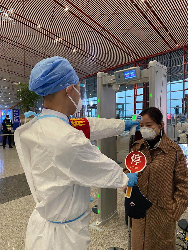 2020年的疫情與春運不期而遇。從1月25日大年初一開始,隨著疫情防控工作的深入開展,首都機場航站樓第一時間在關(guān)鍵位置上增設(shè)測溫點33個,緊急增加測溫人員350名,24小時持續(xù)對所有進出航站樓的人員進行體溫監(jiān)測,筑起了“36.7℃”的測溫防線。